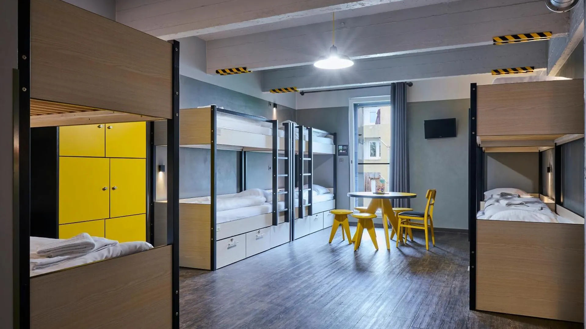 Die modernen Gästezimmer haben farbige Böden und sind modern gestaltet.