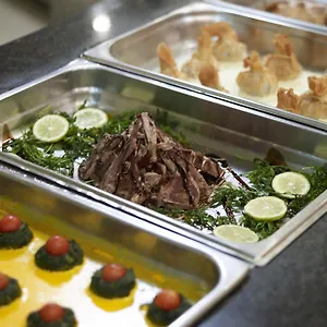 Im Restaurant des Hotels wird ein kostenloses einfaches Frühstück angeboten. Die Lobby- Bar bietet Karaoke und einen TV sowie lokale Getränke. Die Gäste können griechische Mahlzeiten im Restaurant Terrace Coffee & Snacks, ein paar Meter entfernt vom Hotel, genießen.